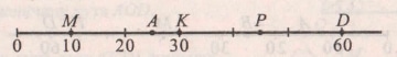 Завдання 4 За рисунком указати на координатному промені точку, яка має координату 25.