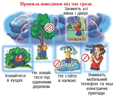2. Намалюйте плакат-пам'ятку із правилами поведінки під час грози: у приміщенні, на річці або в горах.