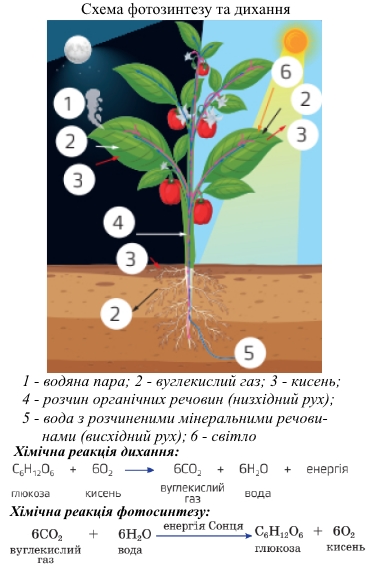 5. Чи відрізняються процеси фотосинтезу та дихання? Відповідь поясніть.