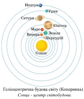 За нею в центрі Всесвіту розміщується Сонце, а навколо обертаються по своїх орбітах планети із супутниками.