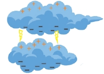 Хмари складаються з дрібних крапель води. Вони рухаються і зіштовхуються, електрони переміщуються між краплями. Сусідні хмари набувають великих різнойменних зарядів, що між ними виникає розряд (іскра).