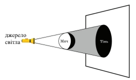 Тінь утворюється, коли на шляху поширення світлових променів стоїть непрозора перешкода, через яке світло не може поширитися. За предметом буде набагато темніше, ніж у місцях, куди світло потрапляє.