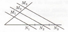 За умовою N2N3 – M2M3 = 4 см, N1N2 = N2N3. За теоремою Фалеса M1M2 = M2M3, звідси N2N3 – M2M3 = N1N2 – M1M2 = 4 см.